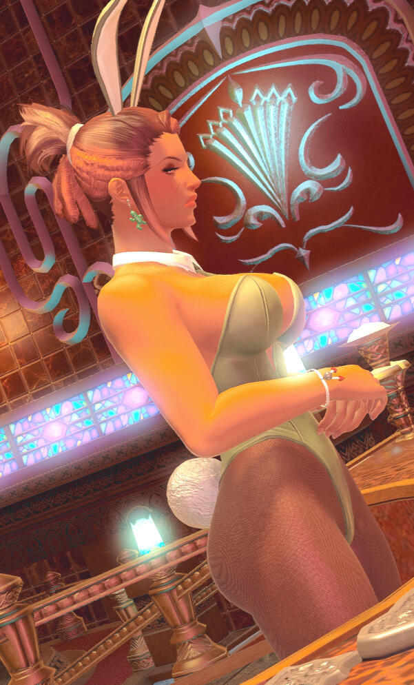 grounded with no choice other than to take up gainful employment, her associate and part-time paramour captain jacke stationed her at the gold saucer as a chief bunny, conducting espionage on unsuspecting clients